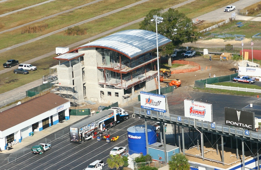 This project consisted of an 8,000 square foot 3-story race control tower and media center for the Gainesville Raceway which is owned by the National Hot Rod Association. Under a $2.7M Construction Management contract, the 3-story masonry and structural steel building overlooks the ultra-quick drag strip with a 270 degree view from behind a sloped glass curtain wall system on all floors. The new facility is also equipped with a complete state of the art media center. The challenge of this project was keeping the critical path and delivering the new facility in time for the opening day of the 39th Annual AC Delco NHRA Gatornationals, one of the biggest events in Gainesville held each year in the spring.