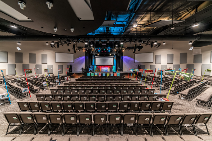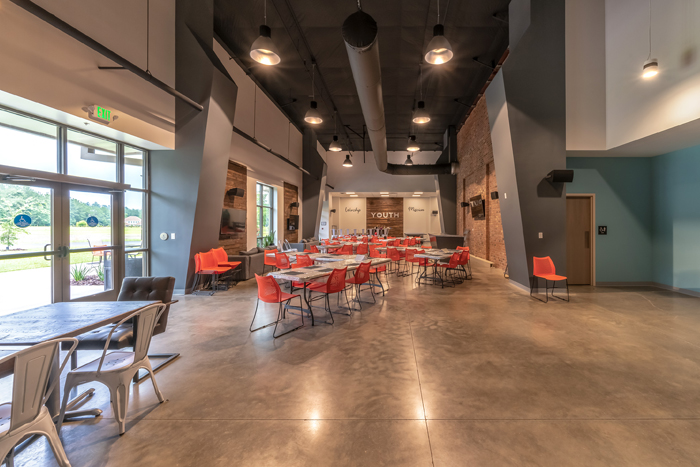 This design build projects consists of the construction of a new 71,677 sq ft. stand alone single story worship facility. The facility has a 1,900 seat sanctuary, administrative offices, classrooms, large worship space for pre-school and elementary school age children, a youth area for teenagers, a commercial kitchen, various group meetings, and ancillary support spaces. Additionally, the 50 acre site includes paved drives and parking, walks and trails, storm water retention, site utilities, and landscaping.