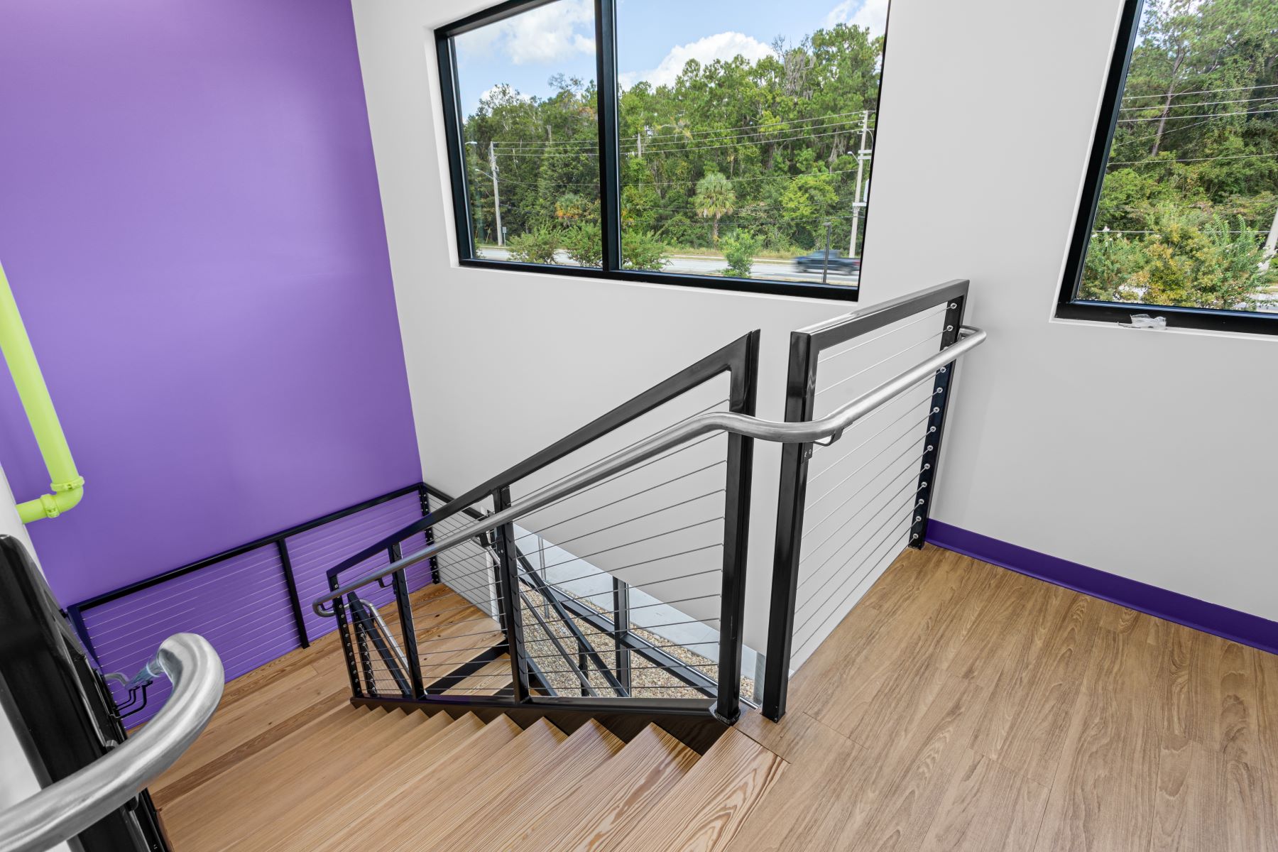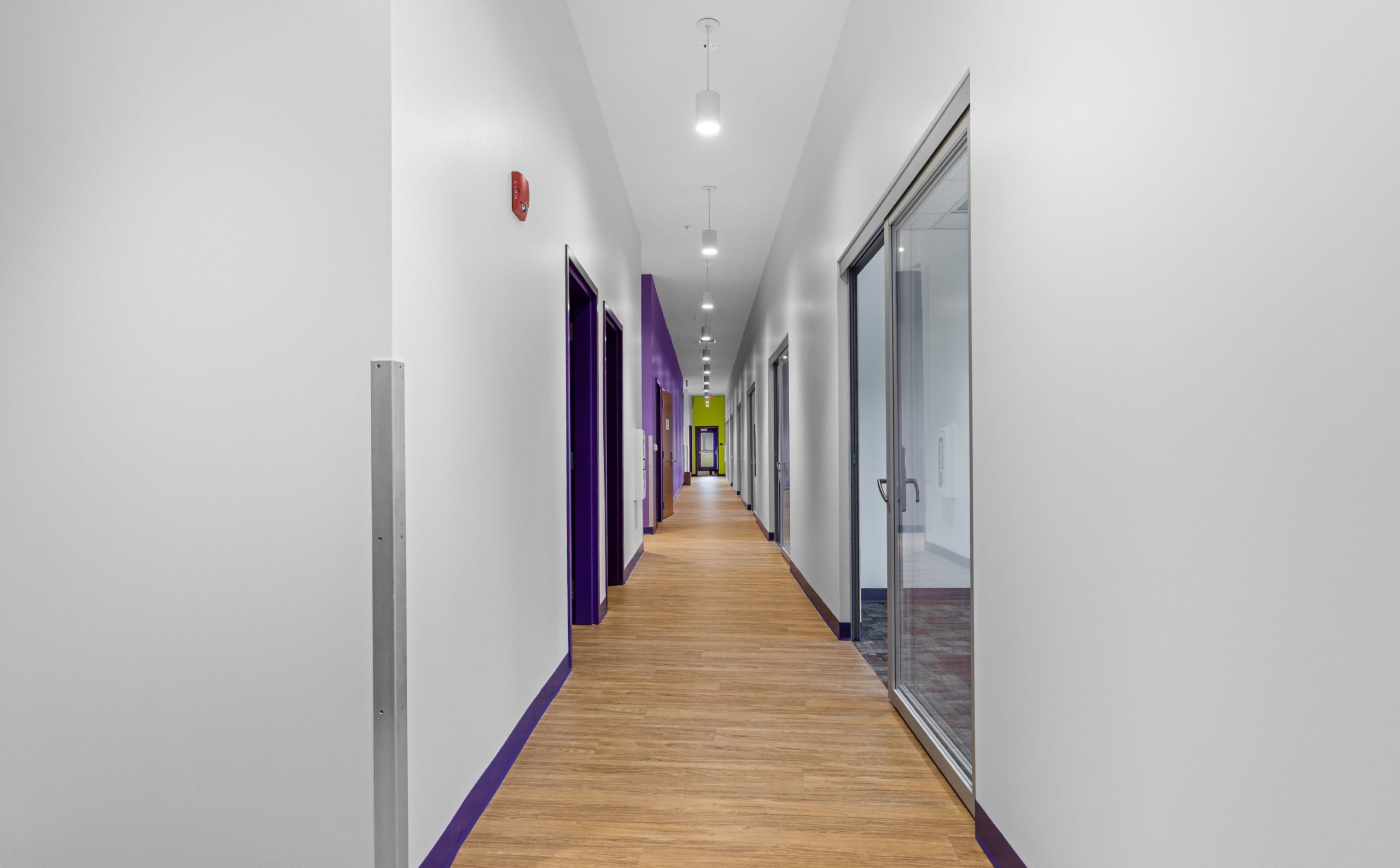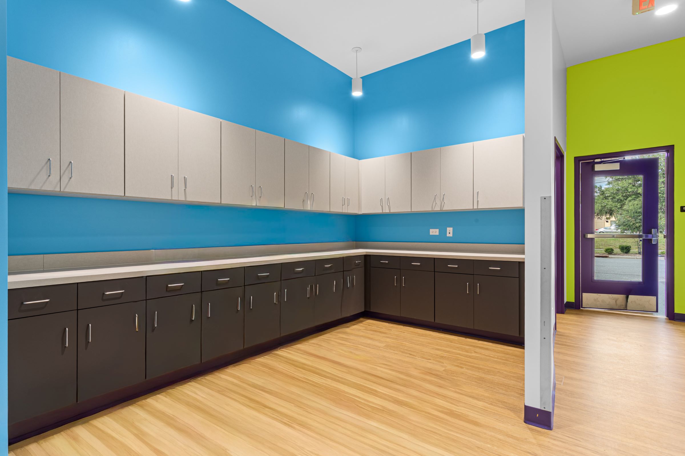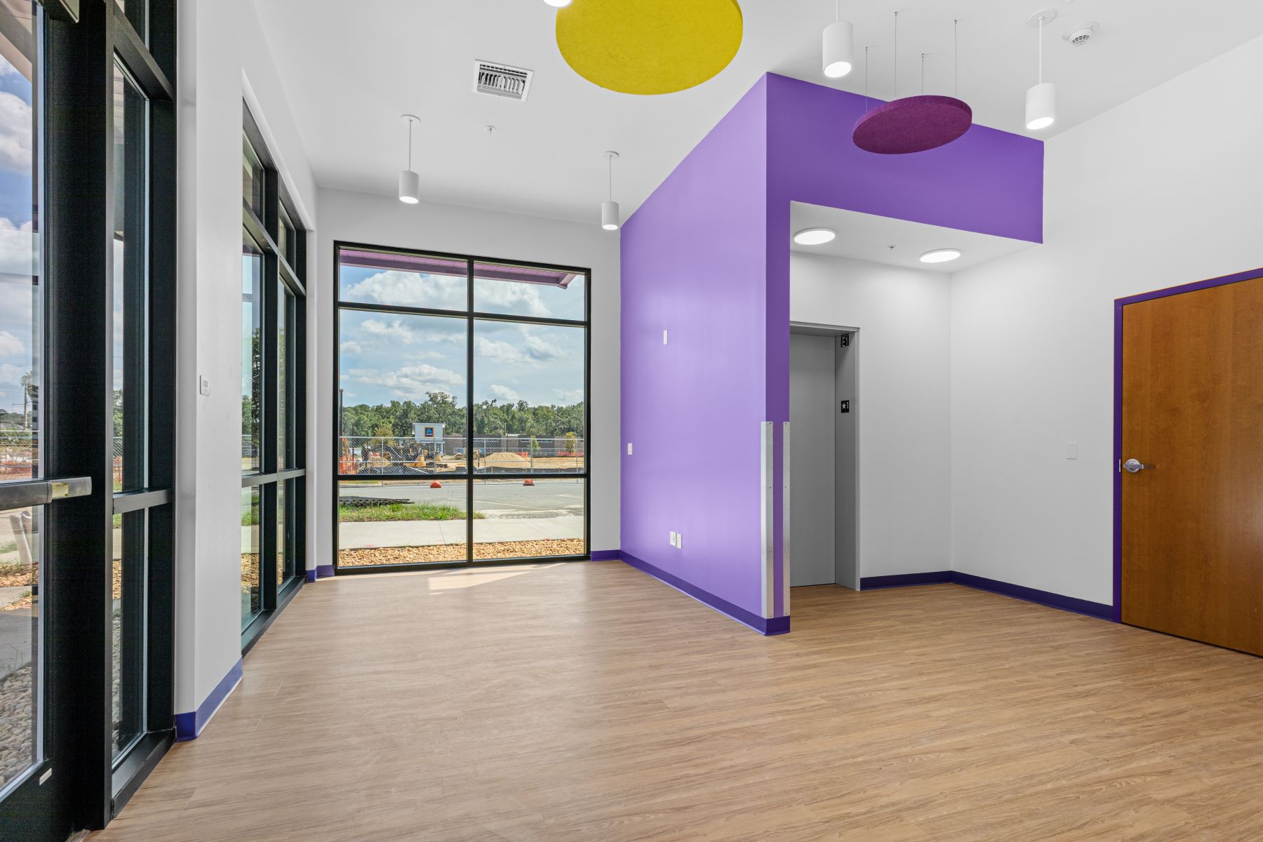 Two-story, 11,300-square-foot facility serves as the administrative headquarters for O2B Kids while also supporting classroom learning. The building was designed to balance functionality with growth, offering a mix of private offices, open workspaces, and conference rooms, along with three classrooms that complement the adjacent daycare center.