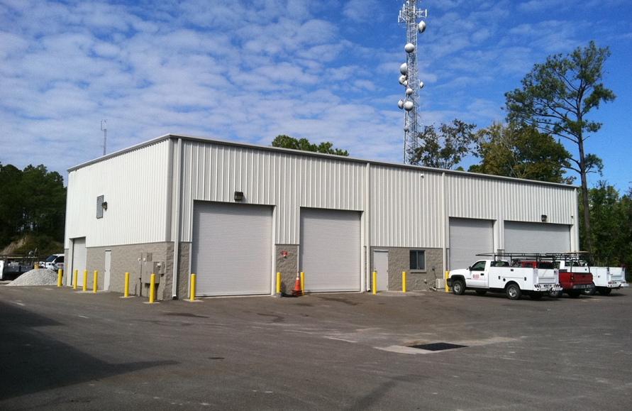 This design/build project consisted of a ground up new office and shop facility. The 5,373 sf administration building was constructed of 8” CMU, split face CMU and EFIS stucco system. The roof structure of the office is structural steel columns, beams, metal deck with rigid insulation above the roof deck and a modified built up roof. The interior included metal studs, drywall, paint, acoustical ceilings, glue down carpet, ceramic tile, Electrical, mechanical, fire sprinklers and plumbing. The shop building is a 6,000 sf pre-engineered metal building with 4 service bays, small office and bathroom with a concrete mezzanine deck used for storage.