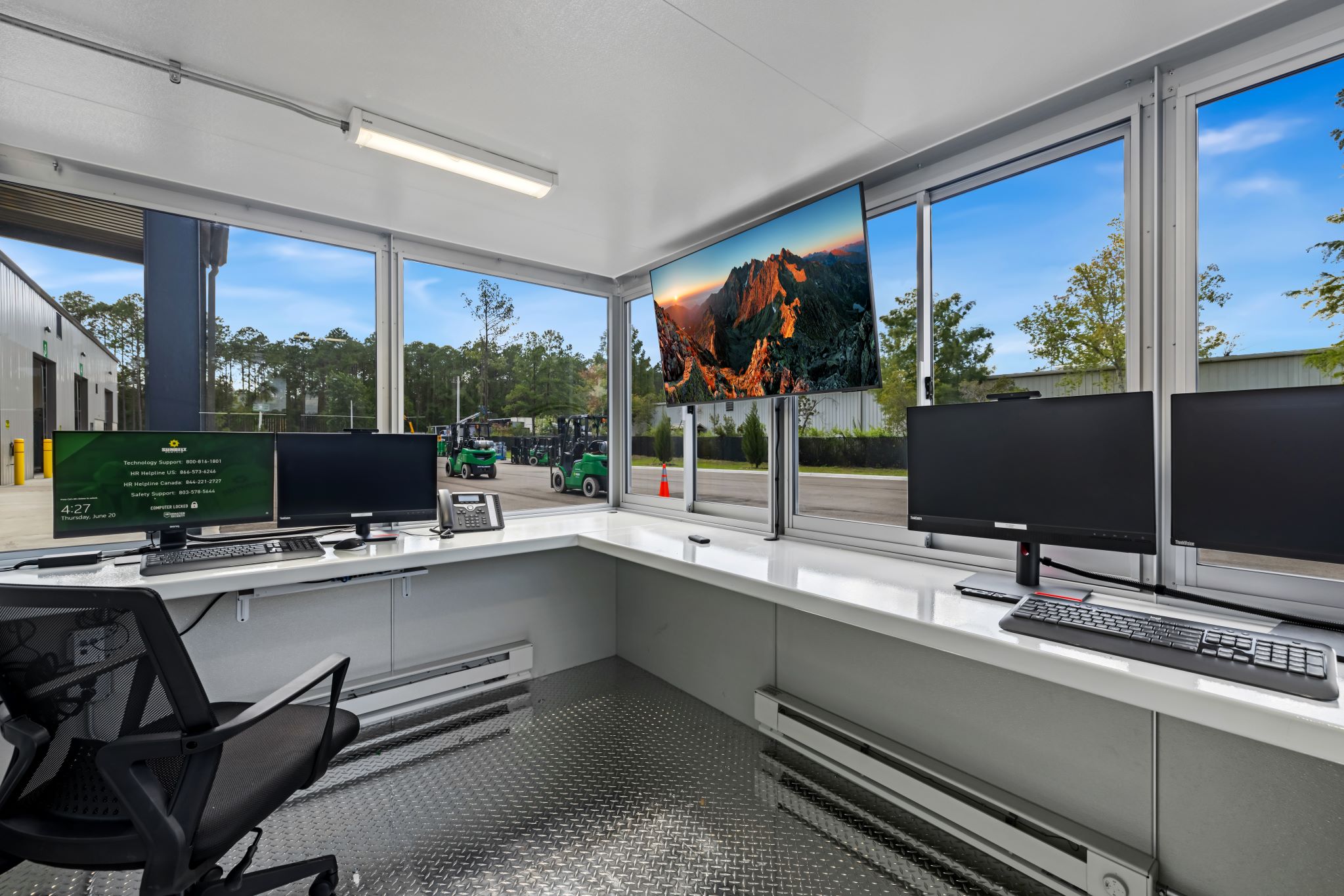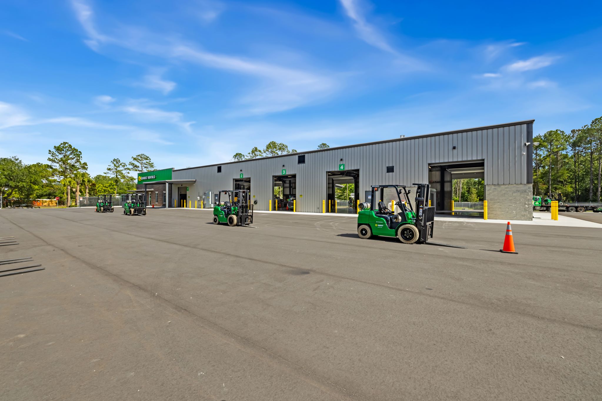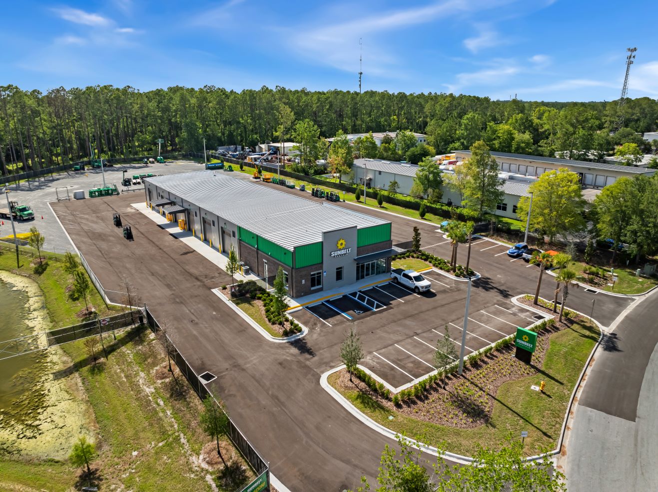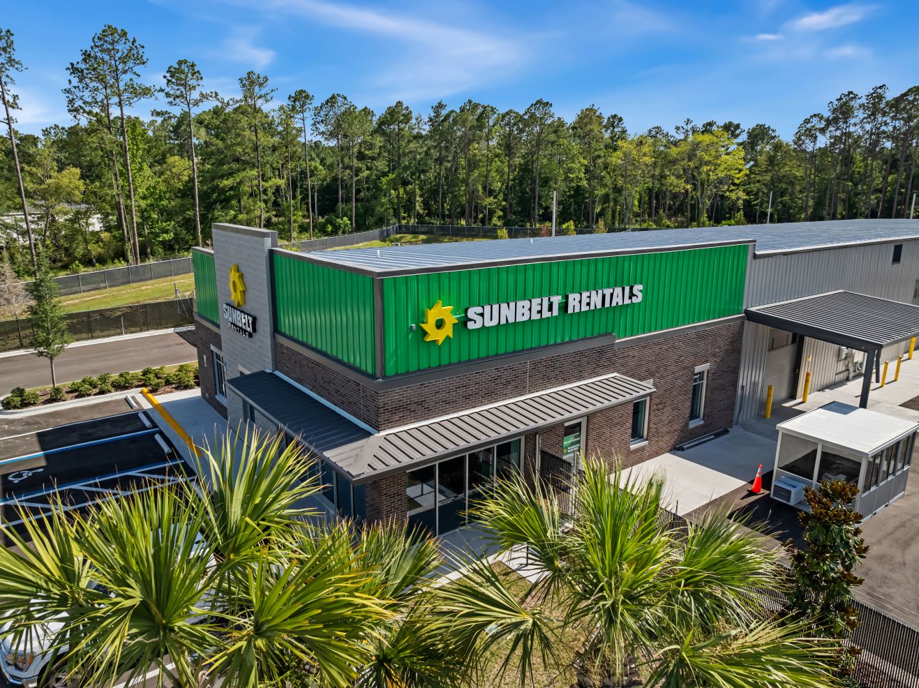 Sunbelt Rentals new Gainesville Branch. The structure is a metal building with brick veneer. The building is broken up into a front office area, maintenance shop in the middle section of the building, and a drive through wash bay/ pressure washing area for cleaning equipment. The property is 5 acres with plenty of outside parking area for heavy rental equipment and delivery trucks. The facility has its own gasoline and diesel tanks to fuel rental equipment and trucks.