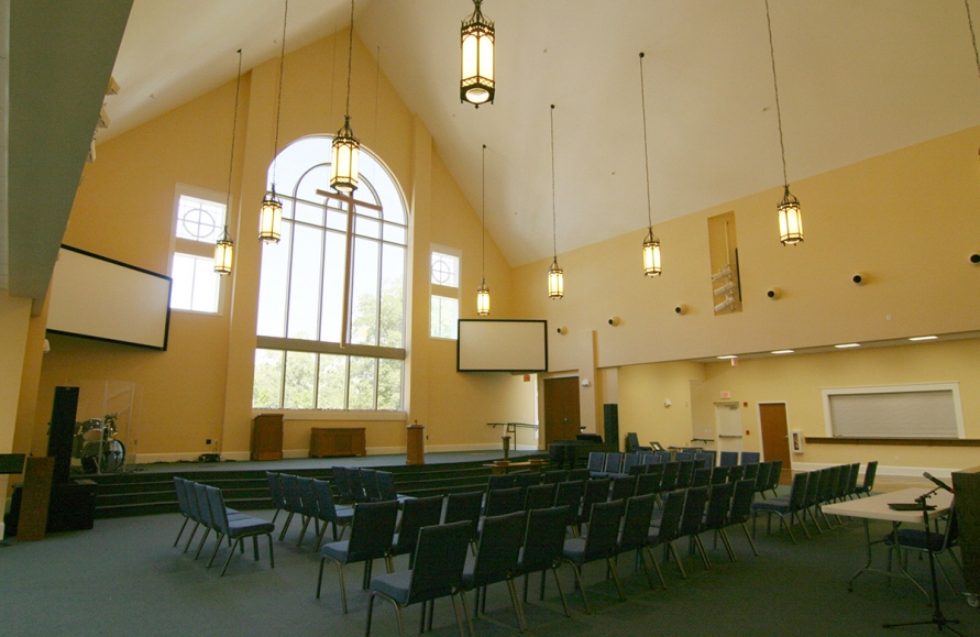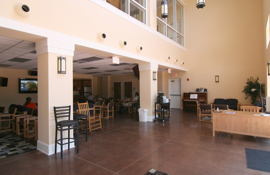 This project for the University United Methodist Student Center is a 17,730 square foot, 3-story masonry building complete with impressive structure features and extensive use of brick, stucco, and large, arched and circular curtain wall assemblies. The first floor of the structure combines an assembly area with both office and student living facilities, while the second floor is comprised of a large, combination sanctuary/multi-purpose room with a 47 foot cathedral ceiling, a commercial kitchen, and restrooms. This threshold building possesses a full sprinkler system with all structural steel fire protected.